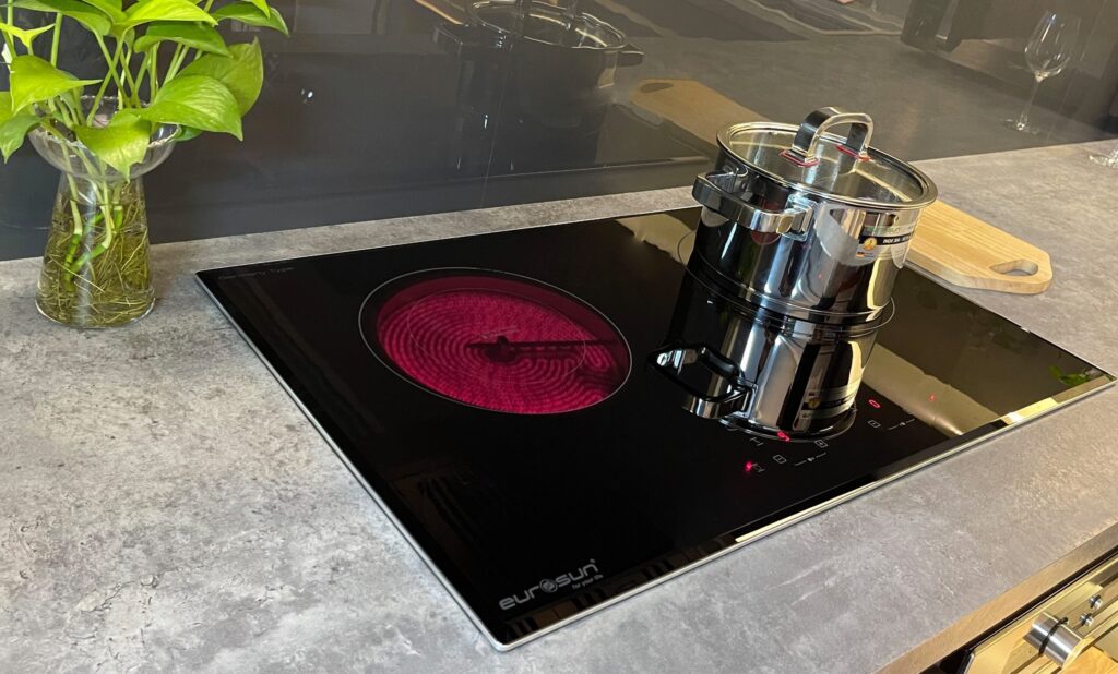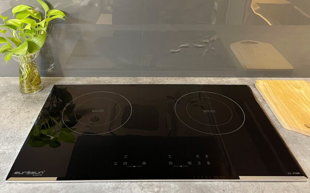 - Chất liệu mặt bếp: Kính chịu nhiệt, dễ vệ sinh và bền bỉ