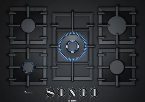 Bếp gas Bosch PPQ7A6B90 Serie 6 là mẫu bếp gas âm cao cấp với 5 vùng nấu, mang đến khả năng chế biến nhiều món cùng lúc cho không gian bếp hiện đại. Mặt bếp sử dụng gốm thủy tinh Schott Ceran màu đen bóng, kết hợp khung viền bo vát tinh tế, vừa tăng tính thẩm mỹ, vừa đảm bảo độ bền bỉ và dễ lau chùi.
