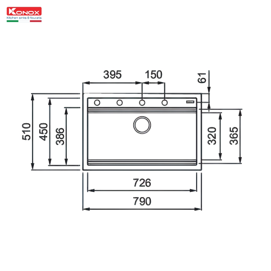 Kích thước hố (mm): 726*386