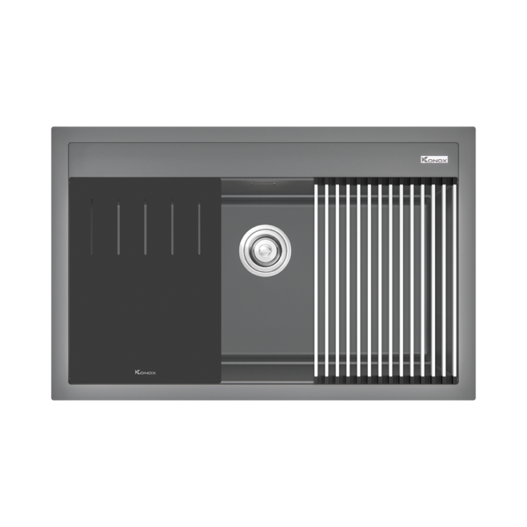 Chậu rửa bát đá Granite Sink Terra 790S Grey nằm trong bộ sưu tập chậu vòi đá cao cấp của Konox – Kiệt tác Ý trong lòng bếp Việt.