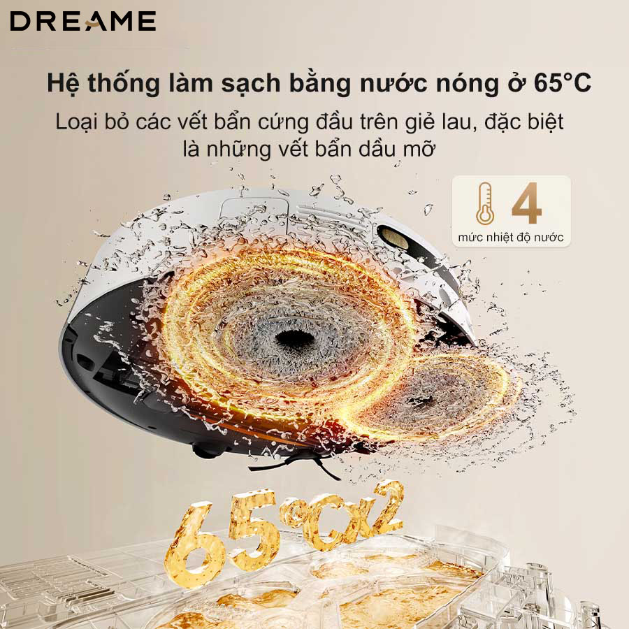 Đặc biệt, trạm sạc của Robot Dreame L30s Ultra được trang bị hệ thống làm sạch bằng nước nóng 65°C, giúp loại bỏ các vết bẩn cứng đầu trên khăn lau, kể cả vết bẩn dầu mỡ. Hơn nữa, tính năng tự động làm khô khăn lau còn loại bỏ hơn 99% độ ẩm, giúp ngăn ngừa mùi hôi khó chịu, giữ cho khăn lau luôn sạch sẽ và sẵn sàng cho lần sử dụng tiếp theo.