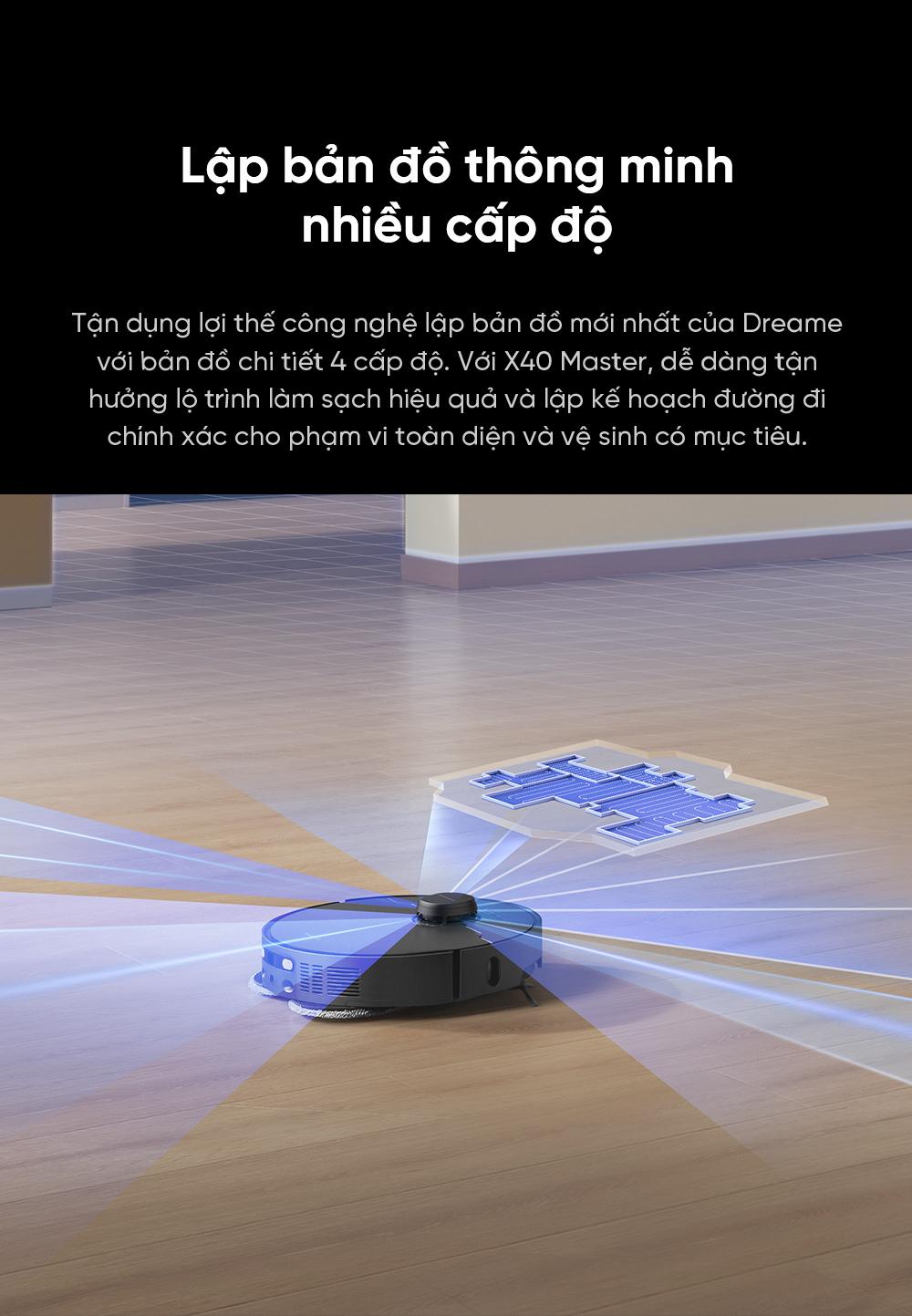 | Điều hướng | Công nghệ LiDAR LDS cải tiến, quét 360 độ, lập bản đồ 3D chính xác, hỗ trợ điều hướng thông minh và tối ưu đường đi |