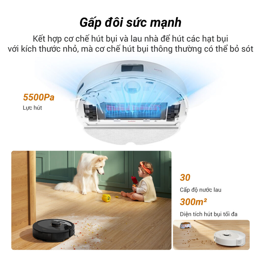Roborock S8 MaxV Ultra là dòng robot hút bụi cao cấp với công suất hút mạnh mẽ lên tới 10.000 Pa, dễ dàng loại bỏ mọi loại vết bẩn cứng đầu trên sàn nhà.