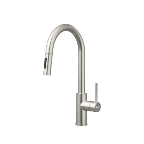 Konox Reno là mẫu vòi rửa bát dây rút được thiết kế theo phong cách hiện đại, với đầu vòi cong mềm mại, mang lại sự thanh thoát cho không gian bếp. Vòi tích hợp 2 chế độ xả (tạo bọt – phun mưa), xoay 360 độ, và đầu vòi kéo dây linh hoạt, cho phép mở rộng vùng thao tác tối đa, lý tưởng cho cả chậu đơn và đôi.